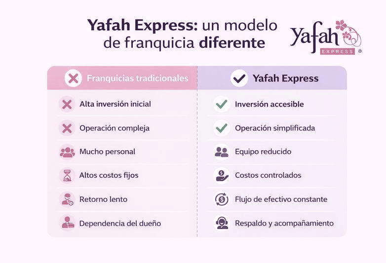 Solo requieres 2 o 3 esteticistas, inventarios mínimos, no existen las cuentas por cobrar. Empresa no dependiente operativamente del franquiciatario.